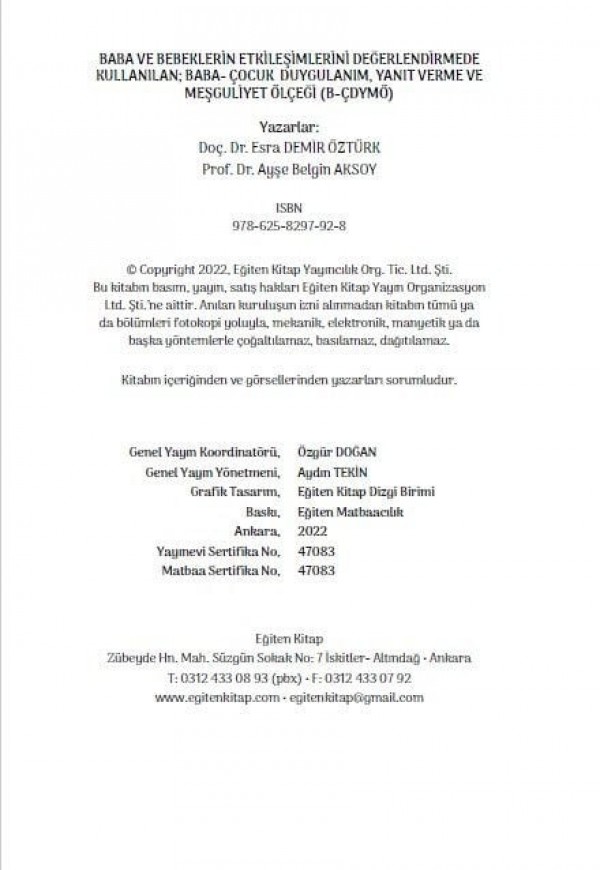 BABA- ÇOCUK DUYGULANIM, YANIT VERME VE MEŞGULİYET ÖLÇEĞİ (B-ÇDYMÖ)