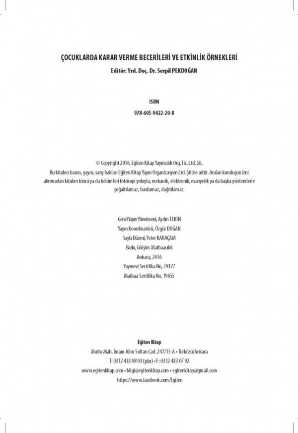 ÇOCUKLARDA KARAR VERME BECERİLERİ - Serpil Pekdoğan
