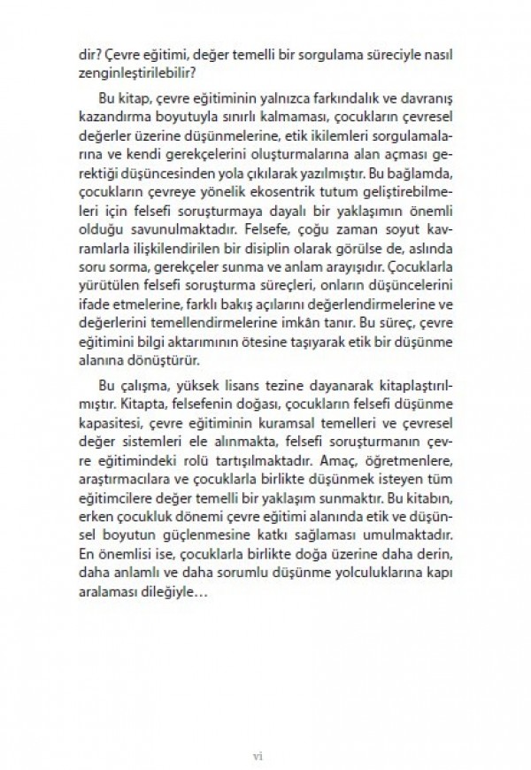 Bu bağlamda, çocukların çevreye yönelik ekosentrik tutum geliştirebilmeleri için felsefi soruşturmaya dayalı bir yaklaşımın önemli olduğu savunulmaktadır. Felsefe, çoğu zaman soyut kavramlarla ilişkilendirilen bir disiplin olarak görülse de, aslında soru sorma, gerekçeler sunma ve anlam arayışıdır. Çocuklarla yürütülen felsefi soruşturma süreçleri, onların düşüncelerini ifade etmelerine, farklı bakış açılarını değerlendirmelerine ve değerlerini temellendirmelerine imkân tanır. Bu süreç, çevre eğitimini bilgi aktarımının ötesine taşıyarak etik bir düşünme alanına dönüştürür.