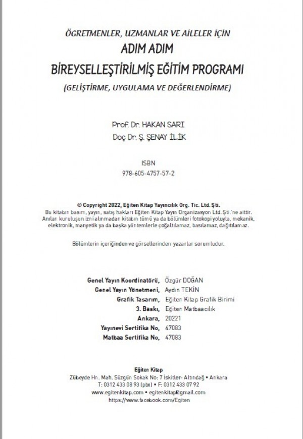 ADIM ADIMBİREYSELLEŞTİRİLMİŞ EĞİTİM PROGRAMI(GELİŞTİRME, UYGULAMA VE DEĞERLENDİRME)Doç. Dr. Ş. Şenay İLİK - Prof. Dr. Hakan SARI