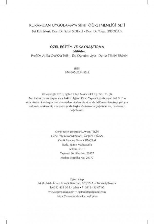 Bu kitabın genel eğitim sisteminde çalışacak sınıf ve branş öğretmen