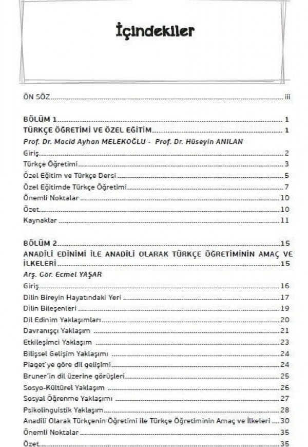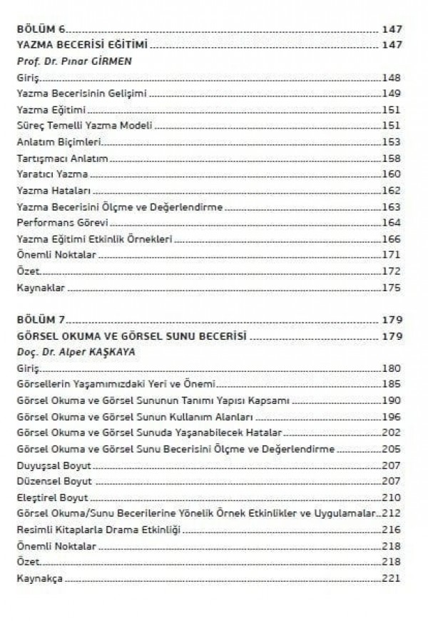kitabında toplam 17 bölüm yer almakta; ilk 11 bölümde Türkçe öğretimi konusunda