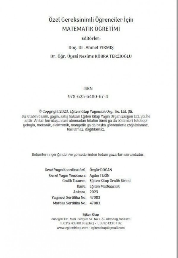 Özel Gereksinimli Öğrenciler İçin MATEMATİK ÖĞRETİMİ