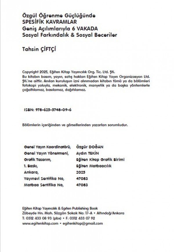 Bu kitabın ağırlık merkezini, ihmal edildiğini gözlemlediğimiz sosyal farkındalık ve sosyal beceri alanları, oluşturmaktadır. ÖÖG olan çocukların sosyal-iletişimsel alanda neler yaşadıklarını daha somut bir şekilde ortaya koyabilmek adına, birbirlerinden farklı özelliklerdeki (aynı zamanda güçlük alanının farklı alt sorunlarını yaşayan) 6 örnek vakayı geniş bir şekilde sunmaya çalışılmıştır. Yaşadıkları sosyal-algısal sorunlarda onlara nasıl yardımcı olabileceğimize dair öneriler, bazen yapılabilecekler listesi vererek bazen de örnek durumlara nasıl müdahale edileceğini açıklamaya çalışılmıştır.
