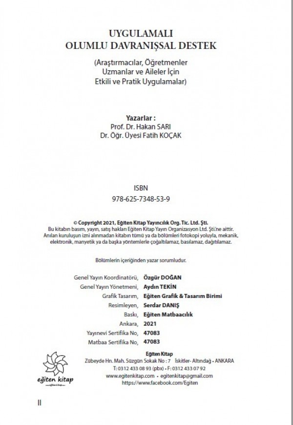 Kitabın başlığı "Uygulamalı Olumlu Davranışsal Destek” Araştırmacılar, Öğretmenler, Uzmanlar ve Aileler İçin Etkili ve Pratik Stratejiler, olarak verilmesinin nedeni toplumda her bireyin yararlanması ve dilinin çok açık ve anlaşılır olması kitabın ayrı bir güzelliğini oluşturmaktadır. Uzun süre çalışarak hazırladığımız bu kitabımızı sizlere sunmaktan onur duyarız.