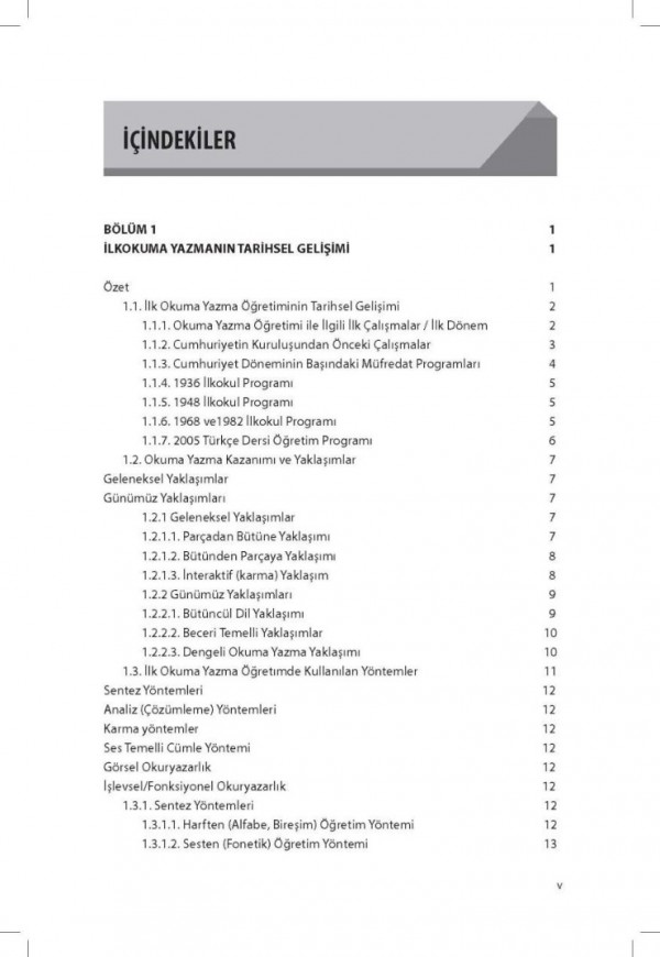 Bu kitapta altı bölüm altında sırasıyla; ilk okuma yazmanın tarihsel gelişimi, ilk