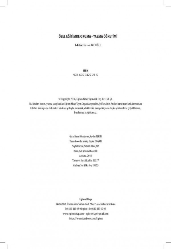 ÖZEL EĞİTİMDE OKUMA YAZMA ÖĞRETİMİ - Ed; Hasan Avcıoğlu