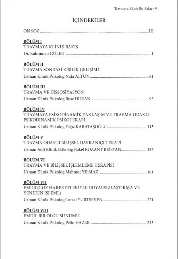 Elinizdeki kitap travmaya hem kuramsal hem uygulama hem de tartışmaların derlenmesi amacıyla bir yaklaşım sunmayı hedeflemektedir.